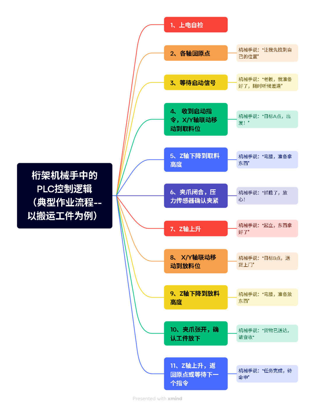 控制逻辑是PLC里跑的“灵魂”,决定了机械手怎么思考、怎么行动。一个好的控制程序,就像一个有经验的老工人——知道什么时候该干什么,遇到问题知道怎么处理。